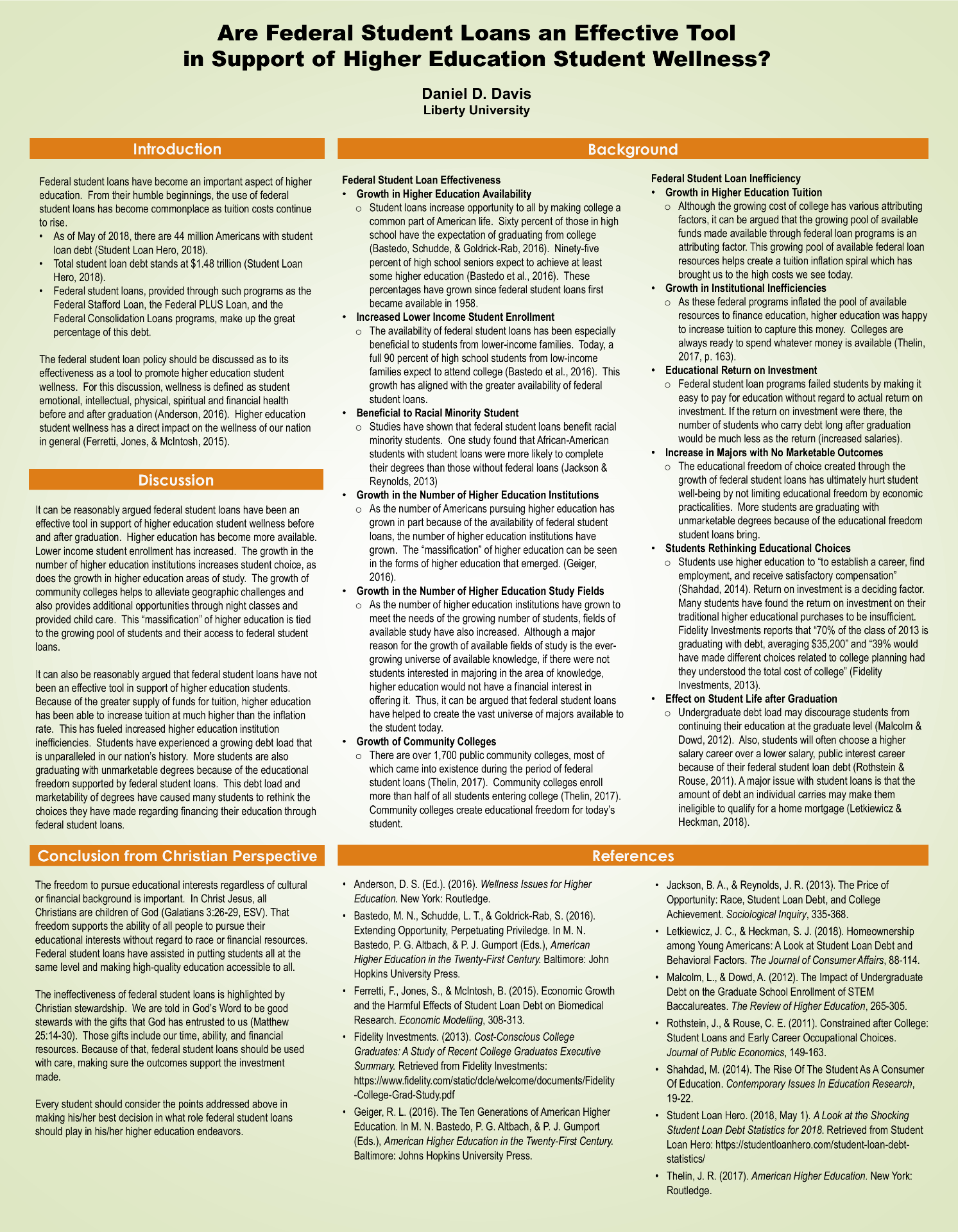 Student Wellness - Federal Student Loans in Support of Higher Education, including Distance Education